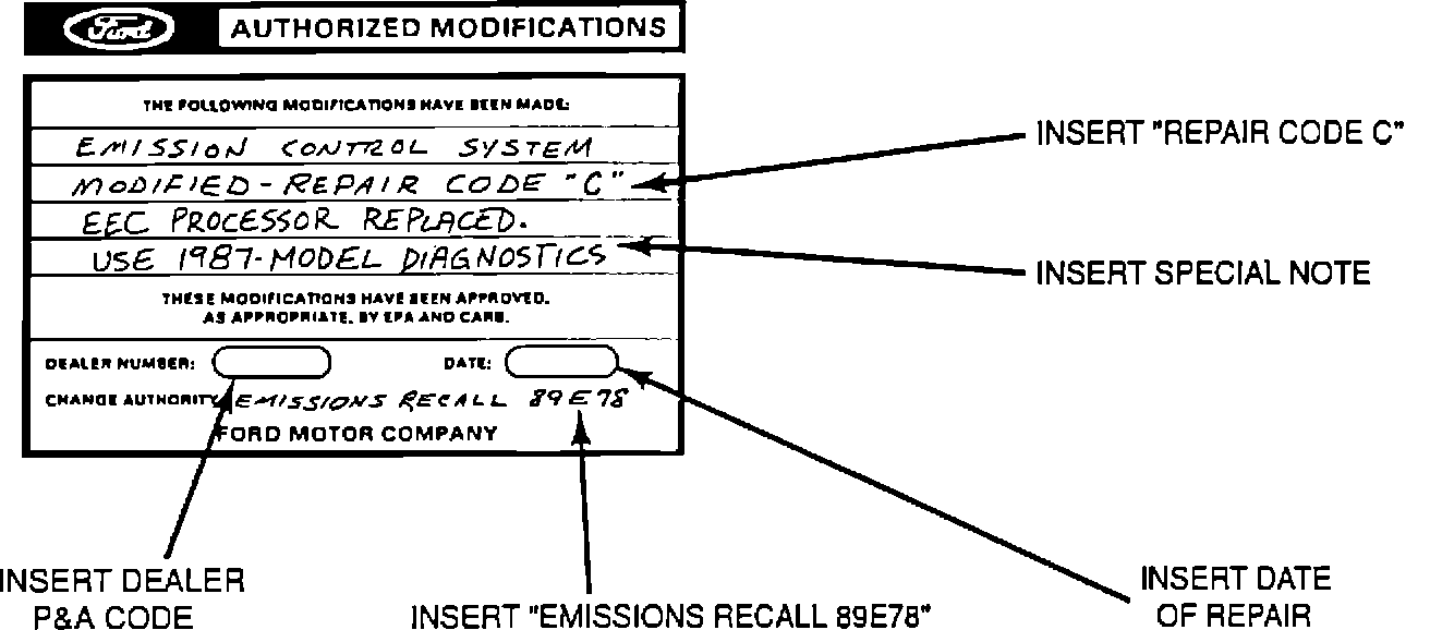 Exhibit 4 - Emissions Recall 89E78 - Repair Code "C"