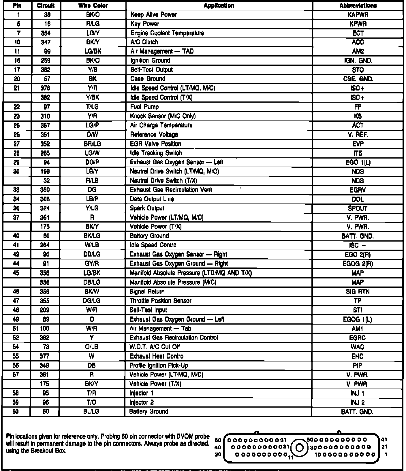 Fig. 236 EEC-IV module connector pin usage. 1986 V6-232 CFI engine: