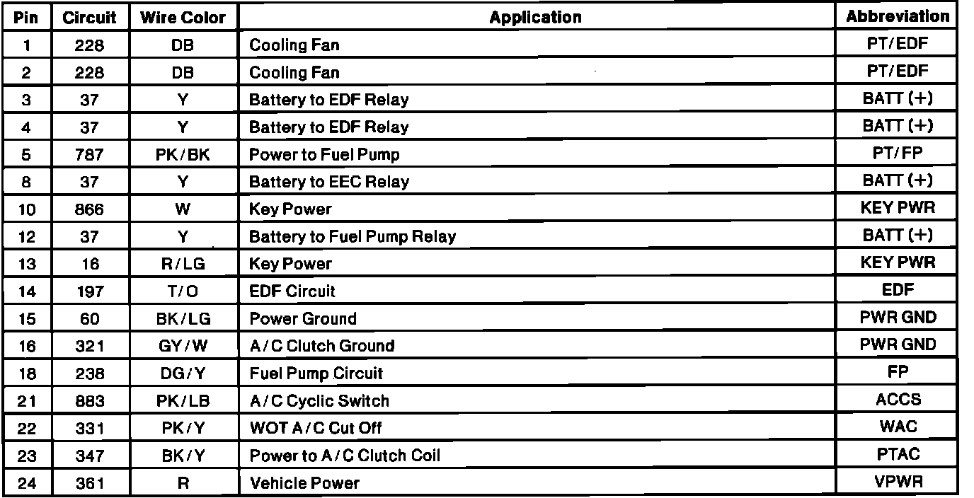 Integrated Relay Control Module (IRCM) Pinout: