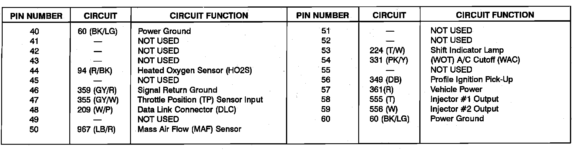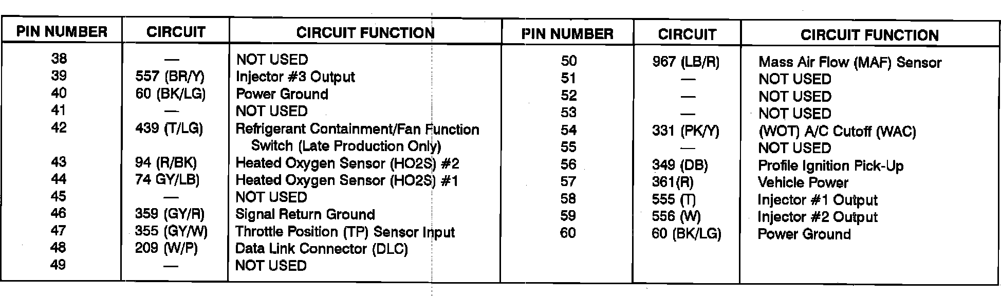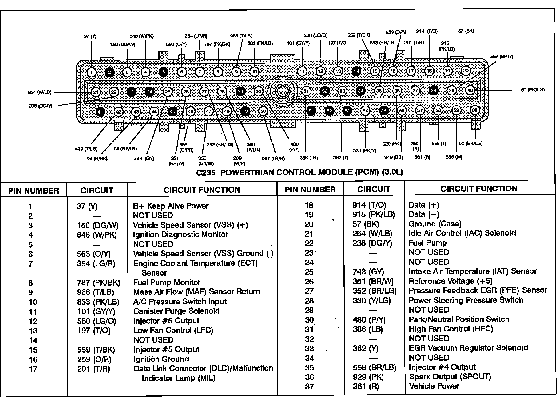 Powertrain Control Module (PCM) Pinout Chart: