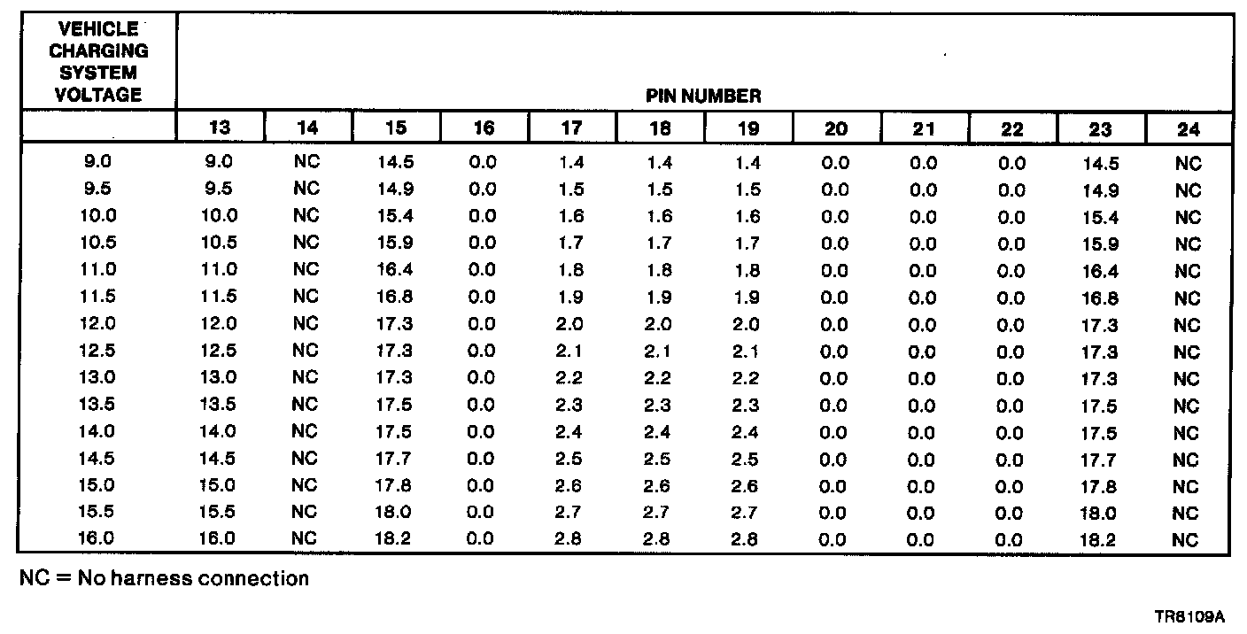 Air Bag Diagnostic Monitor Typical Pin Voltages With System Connected And Engine Running