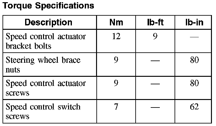Torque Specifications: