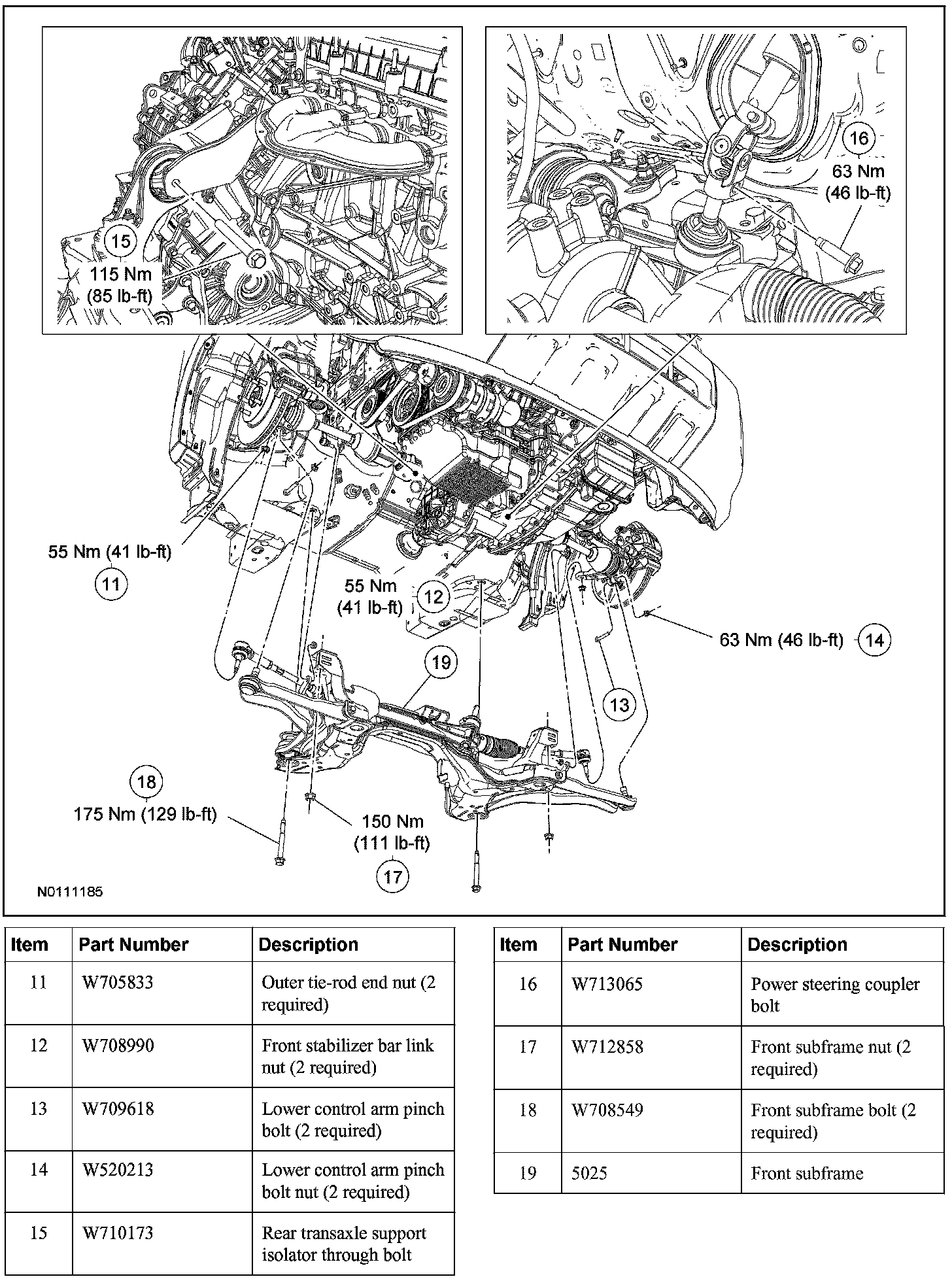 - To install, tighten to 115 Nm (85 lb-ft).
