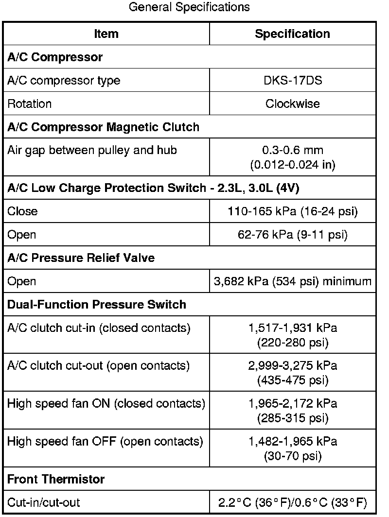The General Specifications apply to non-hybrid vehicles only.