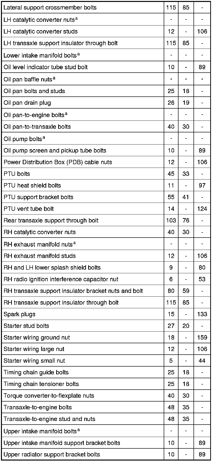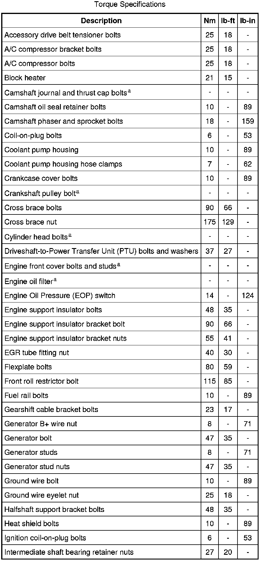 Torque Specifications