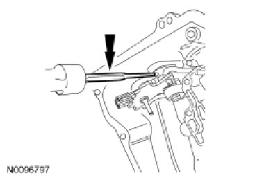 1. Hold the TR sensor in place and slide the manual shaft outward until the manual shaft is out of the transaxle case.