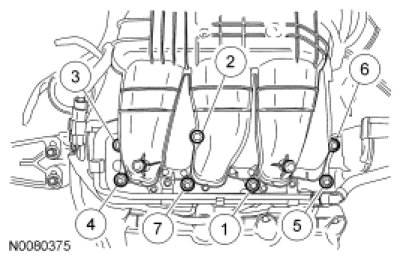 Position the upper intake manifold and install the 7 bolts.