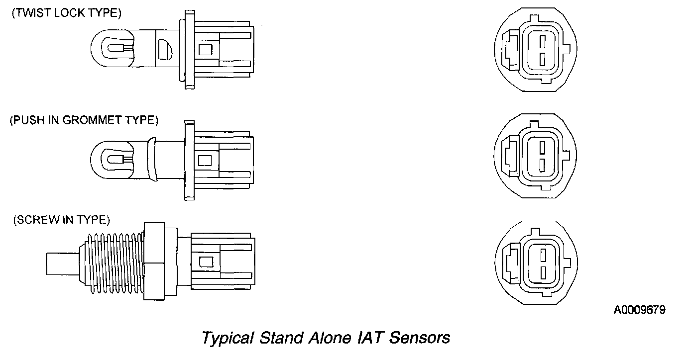 Currently there are 2 types of IAT sensors used, a stand alone and an integrated type. Both types function the same, however the integrated type is incorporated into the mass airflow (MAF) sensor instead of being a stand alone sensor.
