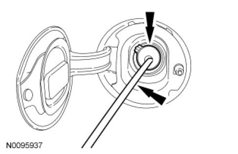 5. NOTE: This step is to remove approximately one-fourth tank of the fuel from a completely full fuel tank and the majority of any residual fuel in the fuel tank filler pipe, lowering the fuel level below the Fuel Pump (FP) module mounting flange.