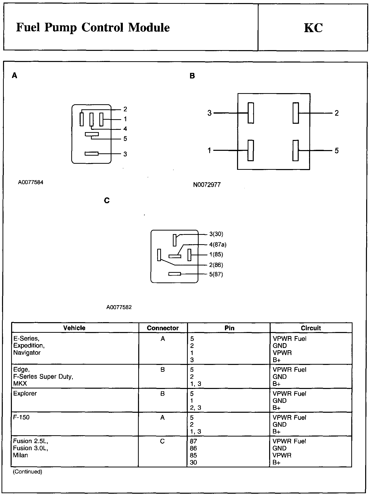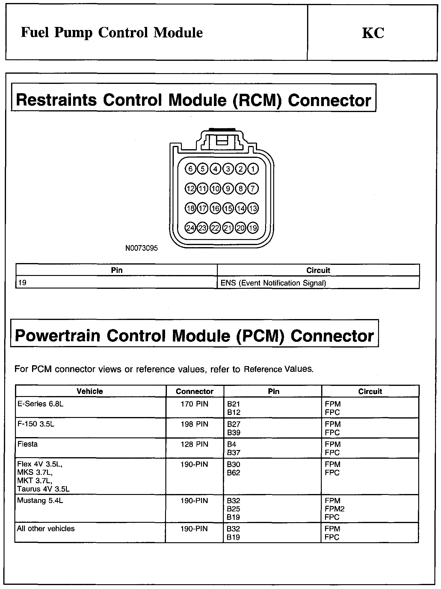 PINPOINT TEST KC: FUEL PUMP CONTROL MODULEFuel Pump Control Module Connector:
