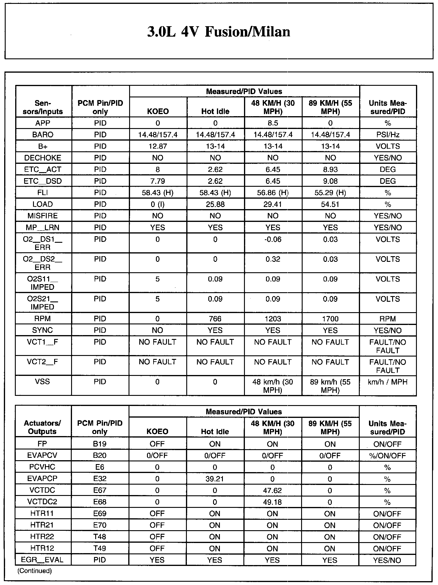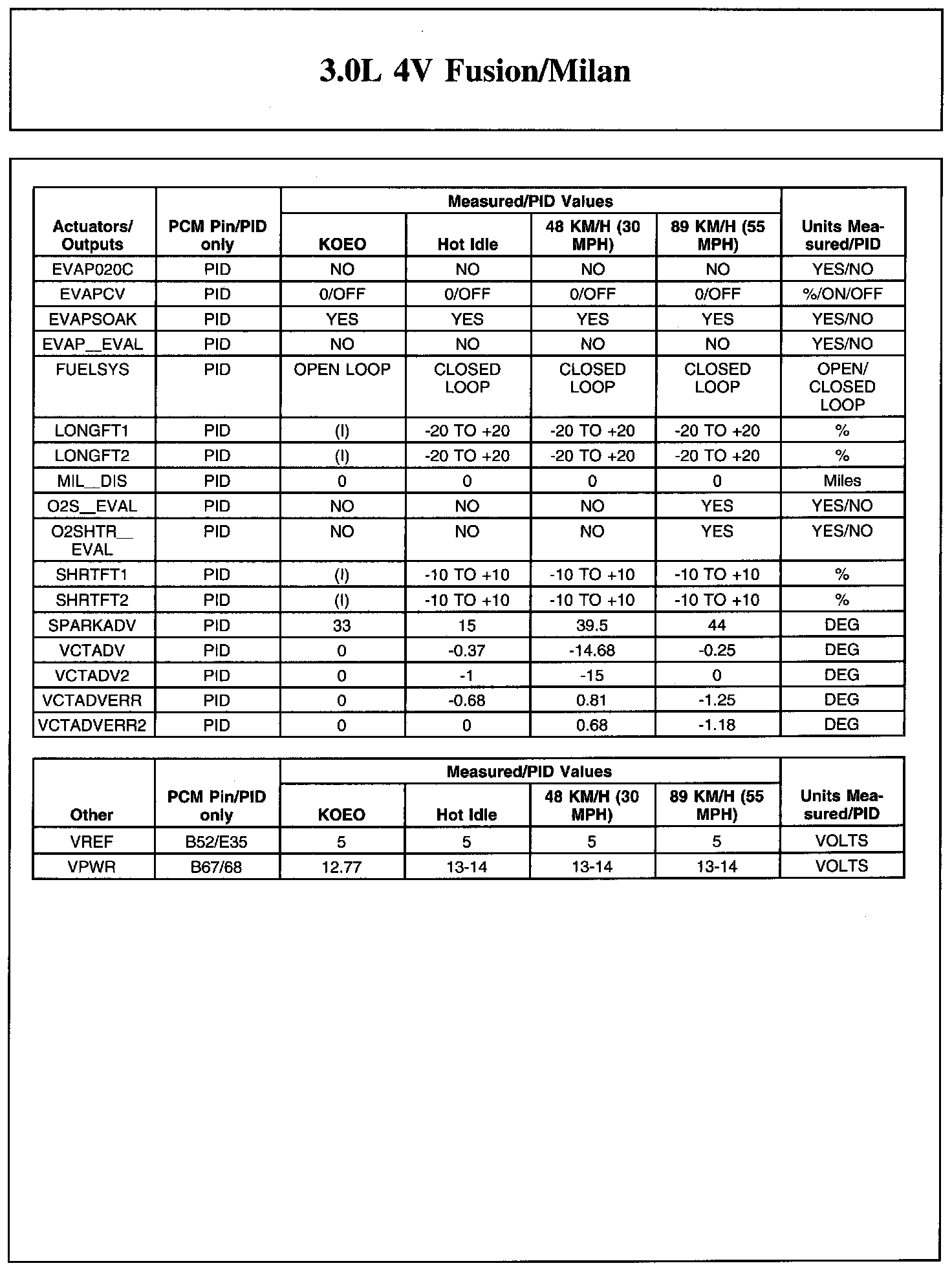 Home >> Mercury >> 2011 >> Milan FWD V6-3.0L >> Repair and Diagnosis >> Powertrain Management >> Computers and Control Systems >> Testing and Inspection >> Scan Tool Testing and Procedures >> Typical Diagnostic Reference Values