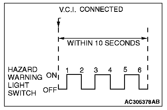 CAUTION: Turn the ignition switch to the "LOCK" (OFF) position and then disconnect vehicle communication interface (V.C.I.) MB991824 from the data link connector.