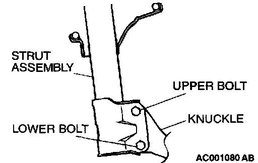 1. Estimate how much additional camber adjustment is required. Using the table, select the camber adjusting bolt, and then replace the knuckle and strut assembly connection bolts (upper bolt, lower bolt) with the selected bolts.