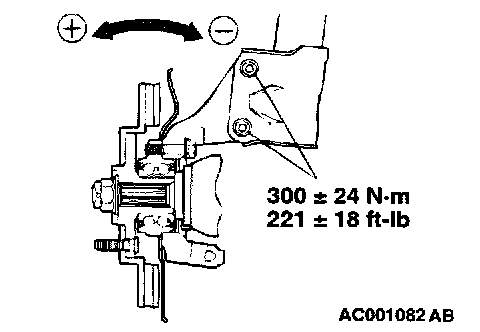 NOTE: For vehicles with aluminum type wheels, attach the camber/caster/kingpin gauge to the driveshaft by using special tool MB991004. Tighten special tool MB991004 to the same torque 226 ± 29 Nm (167 ± 21 ft. lbs.) as the driveshaft nut.