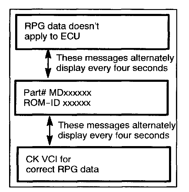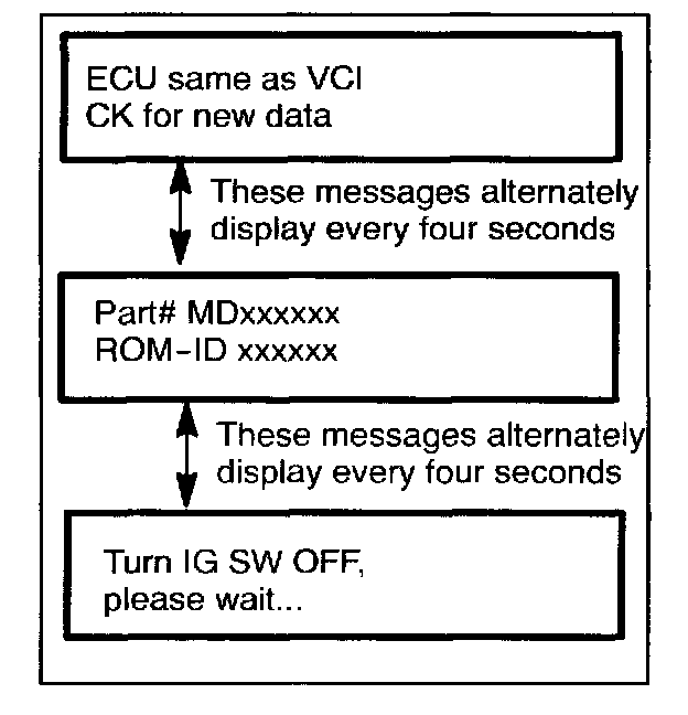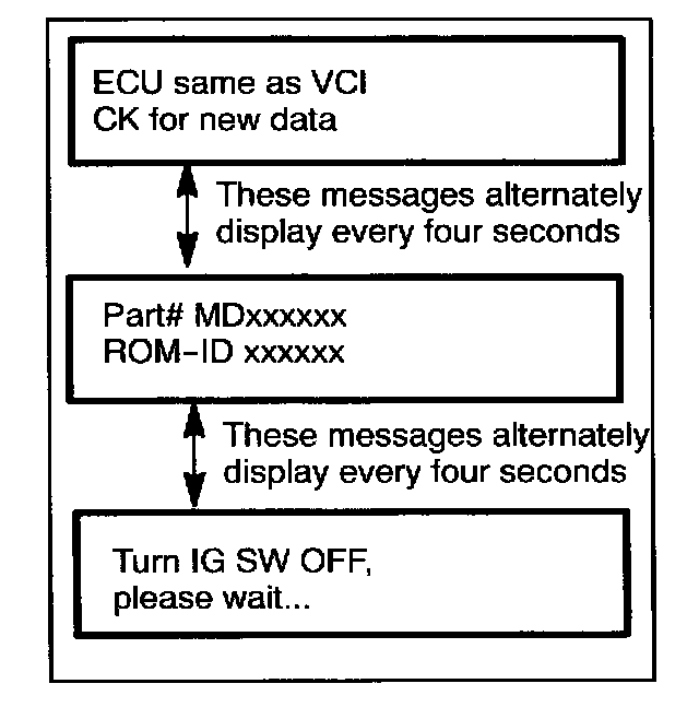 7. If the PCM has already been reprogrammed with this database, or if the MUT-III main harness is not properly connected to the VCI unit, this message displays and reprogramming will not continue.