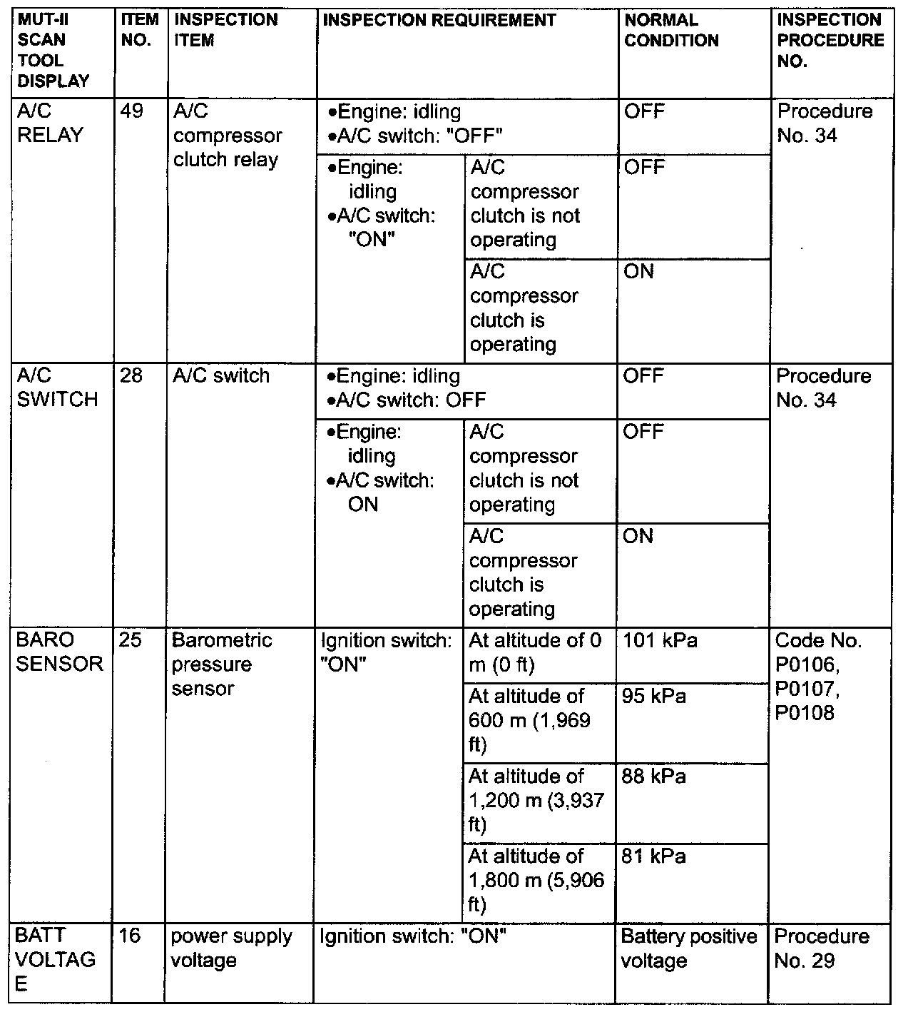 Data List Reference Table & Normal Scan Data Values