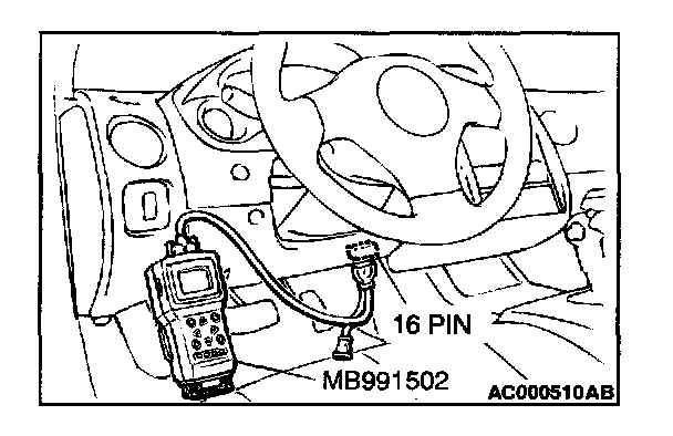 1. Connect scan tool MB991502 to the data link connector terminal (1).