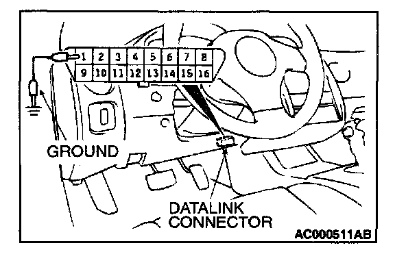 1. Disconnect scan tool MB991502 from the data link connector, or disconnect data link connector terminal (1) form the ground.