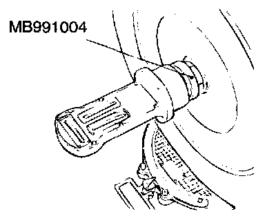 NOTE: For vehicles with aluminum type wheels, attach the camber/caster/kingpin gauge to the driveshaft by using special tool MB991004. Tighten special tool MB991004 to the same torque 226 ± 29 Nm (167 ± 21 ft. lbs.) as the driveshaft nut.