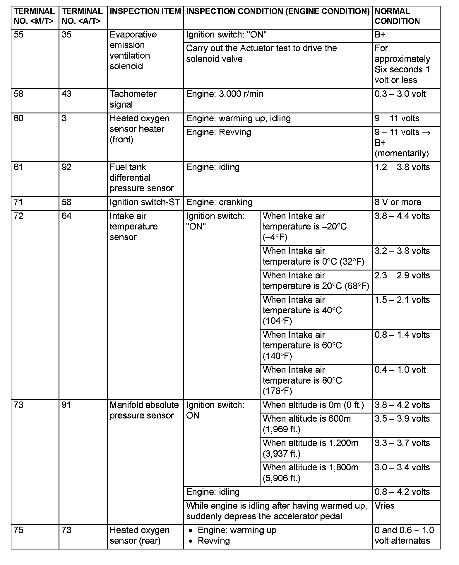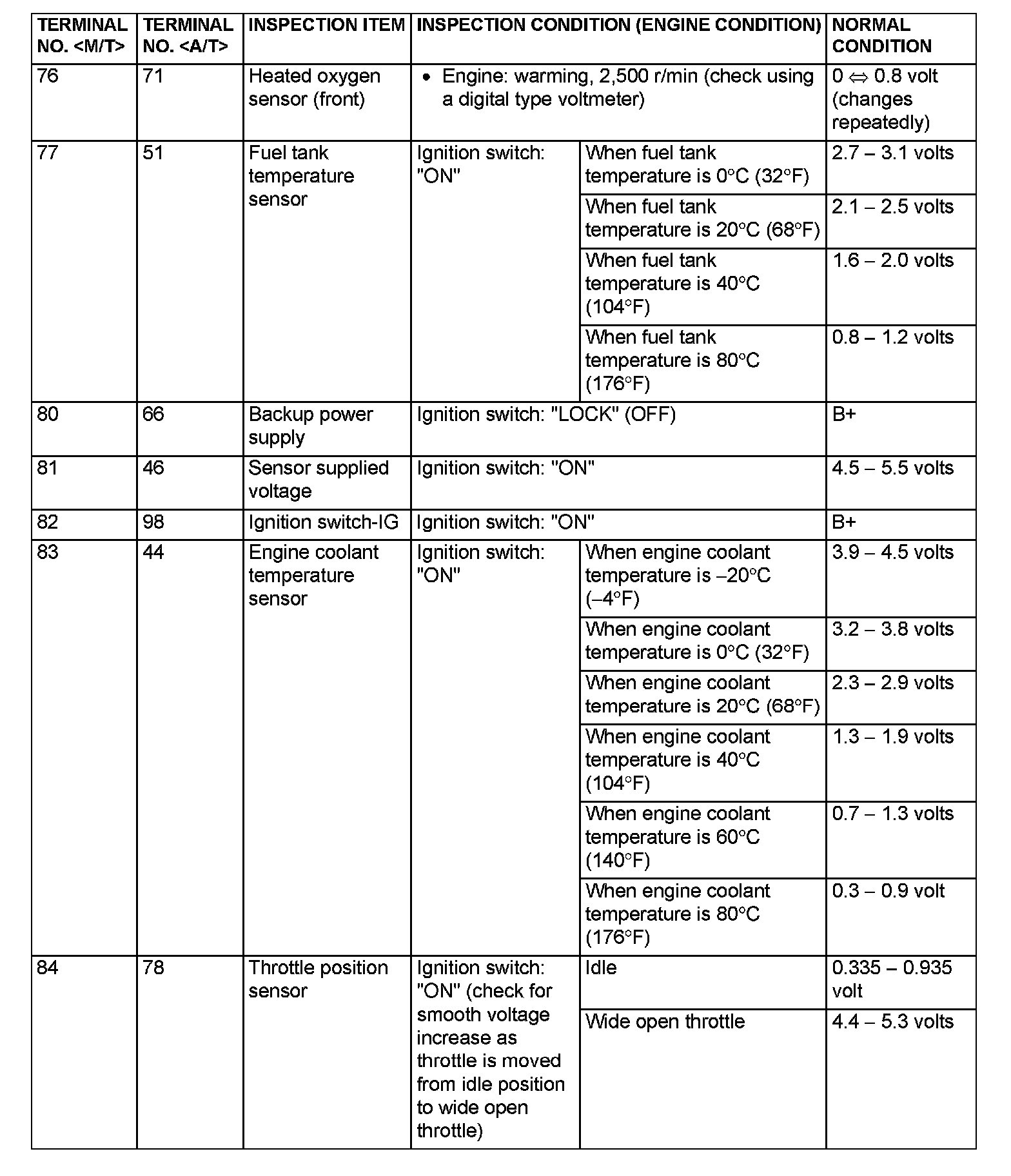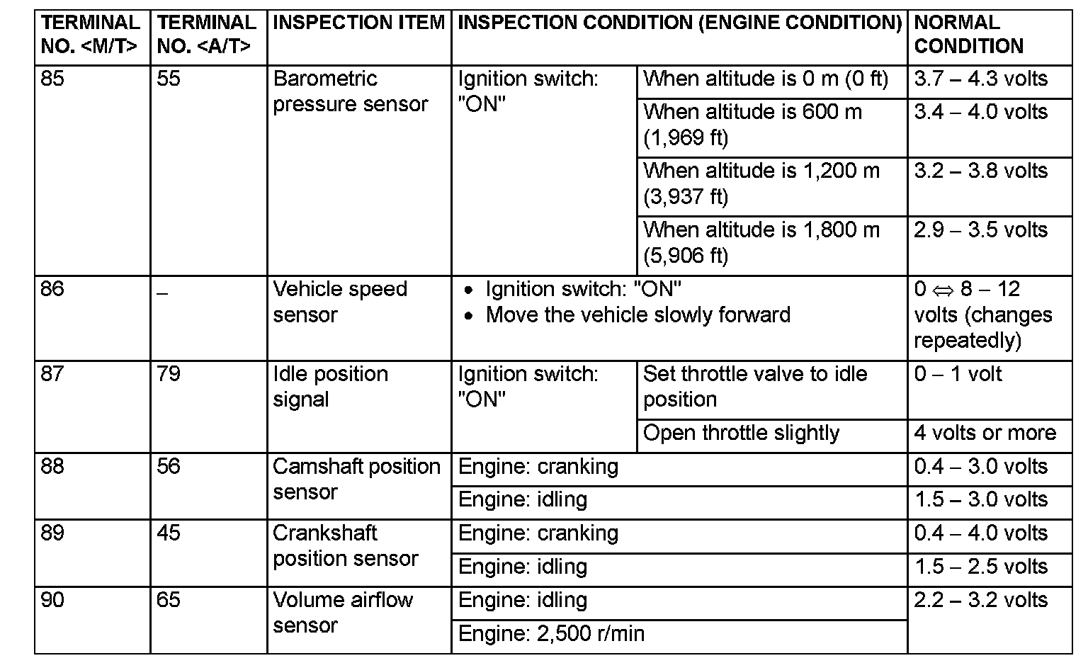 ECM <M/T> Or PCM <A/T> Connector Terminal Arrangement Part 5: