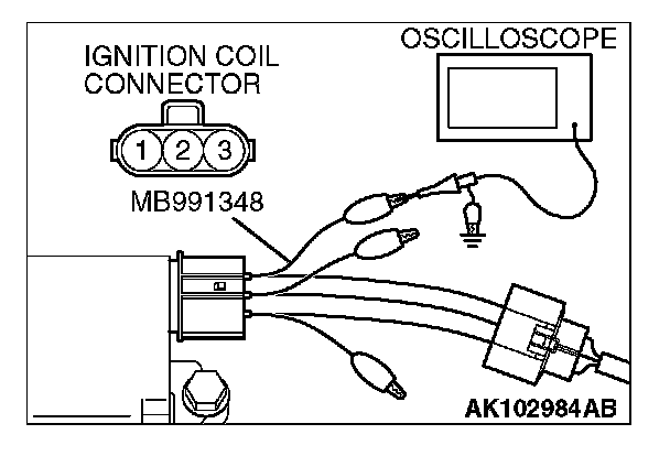 2. Connect the oscilloscope probe to ignition coil connector terminal No. 3.