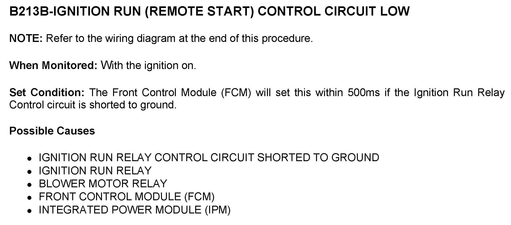 DTC B213B Ignition Run (Remote Start) Control Circuit Low