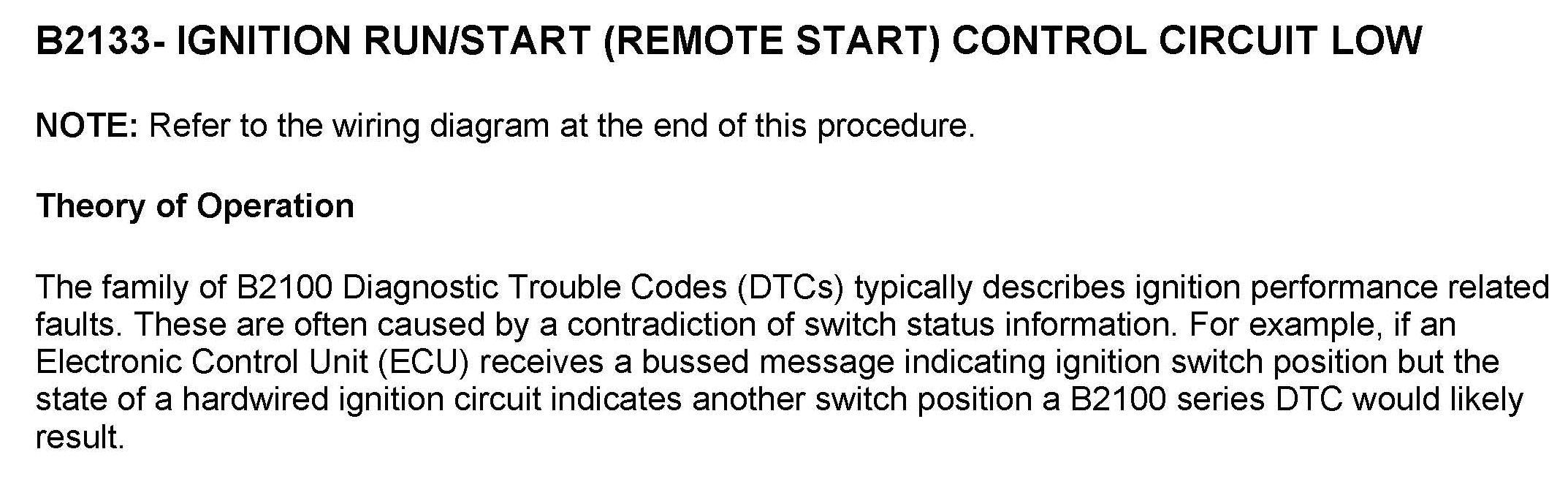 DTC B2133 Ignition Run/Start (Remote Start) Control Circuit Low