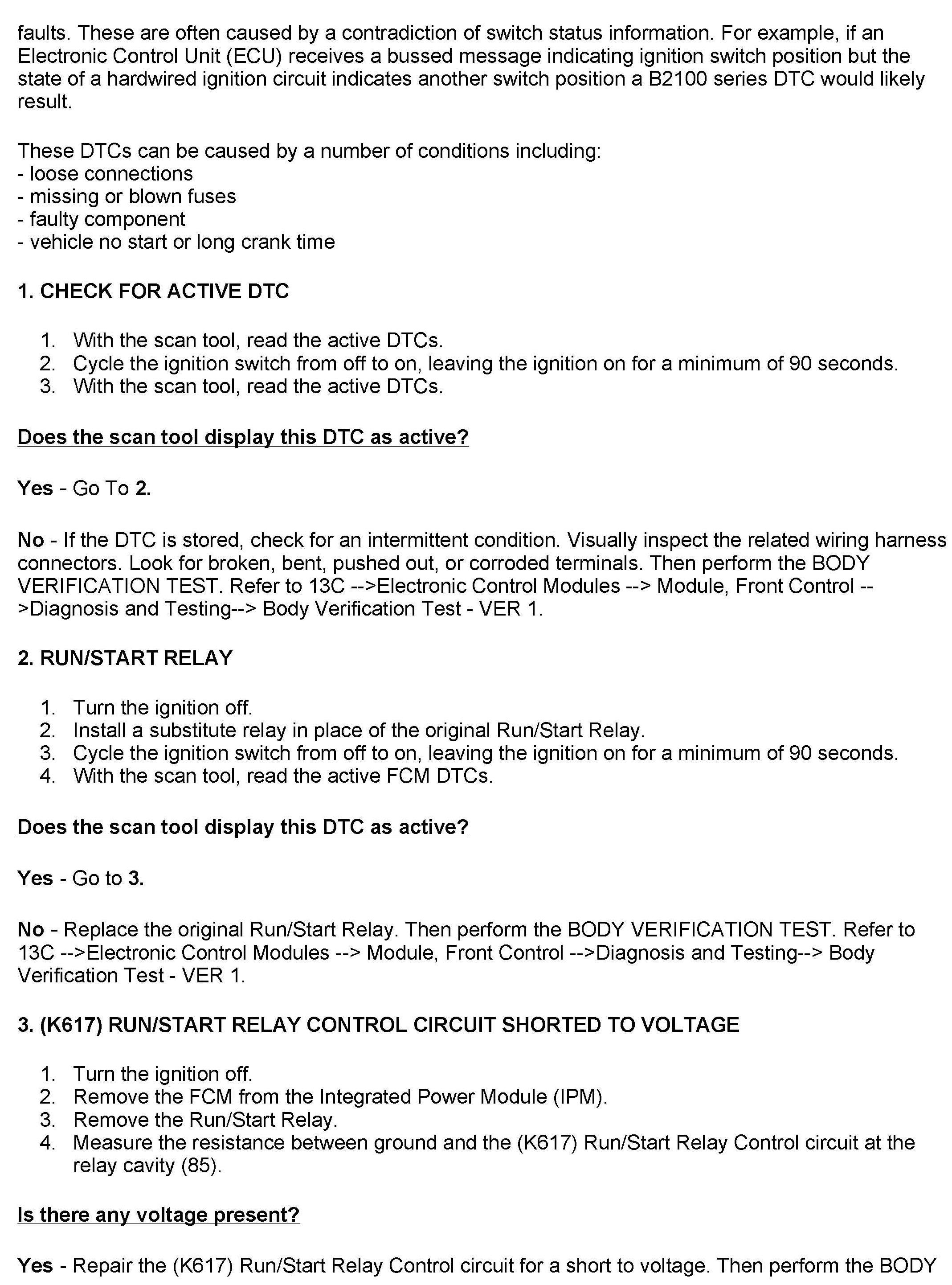 Diagnosis procedures for the DTCs listed below are missing in Raider service manuals. This bulletin provides these DTC diagnosis procedures for affected vehicles. This information should be added to Group 13C Electronic Control Modules under Electrical Diagnosis Diagnosis and Testing.