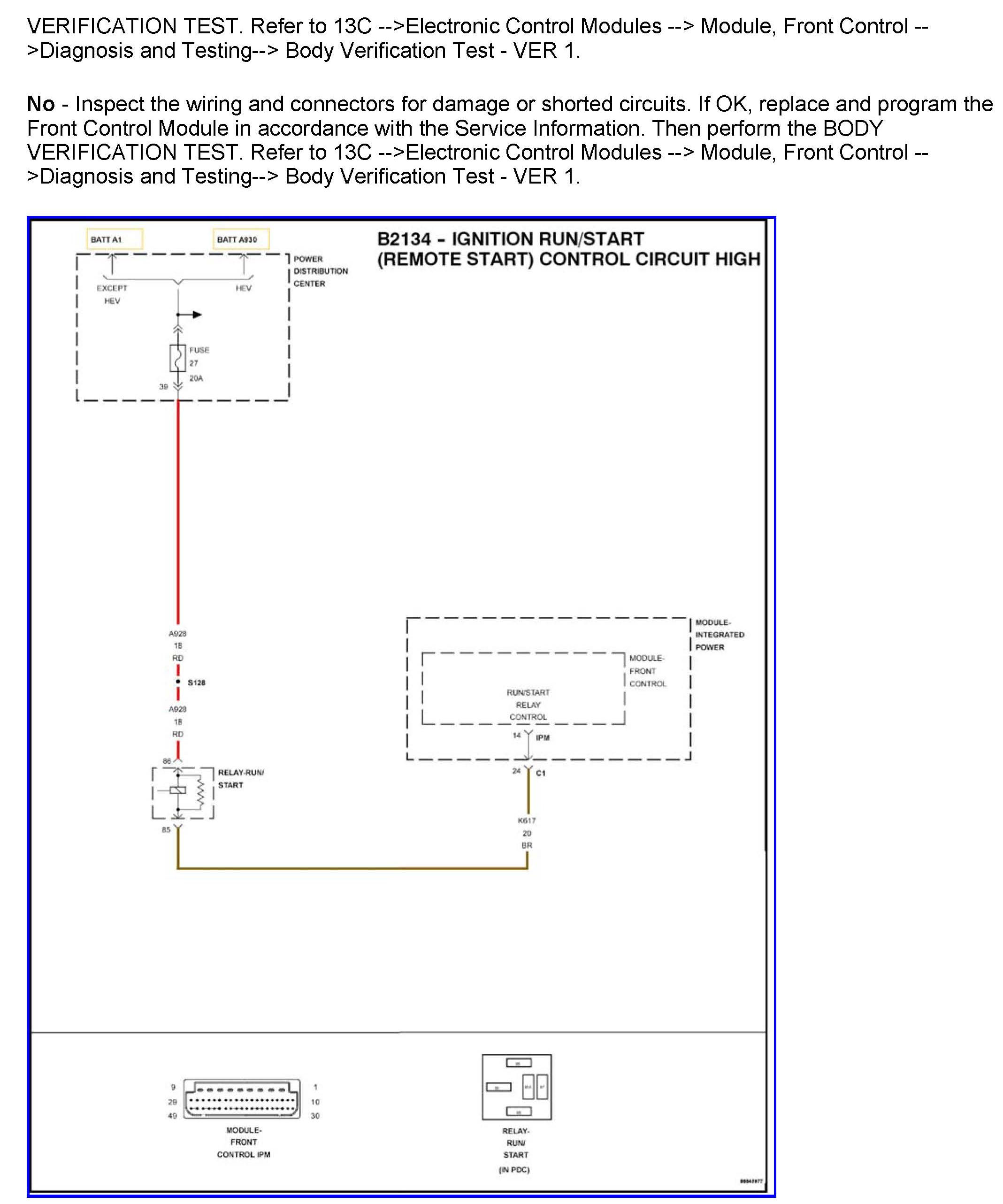 DTC B2134 Ignition Run/Start (Remote Start) Control Circuit High