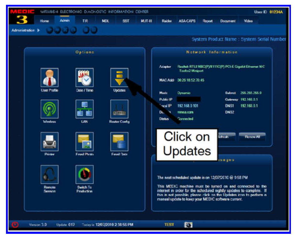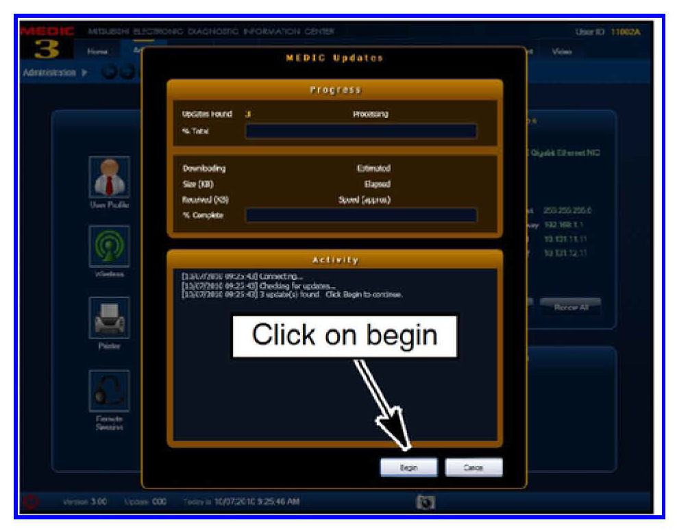 3. If the MEDIC Updates screen advises updates are available, click the "Begin" button.