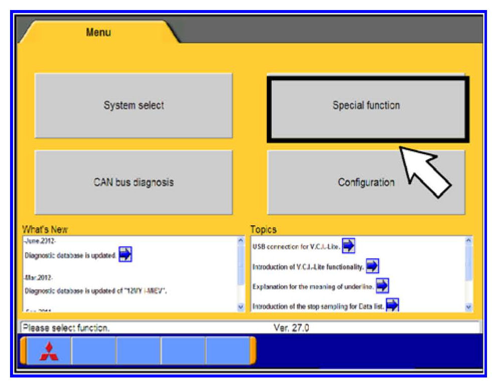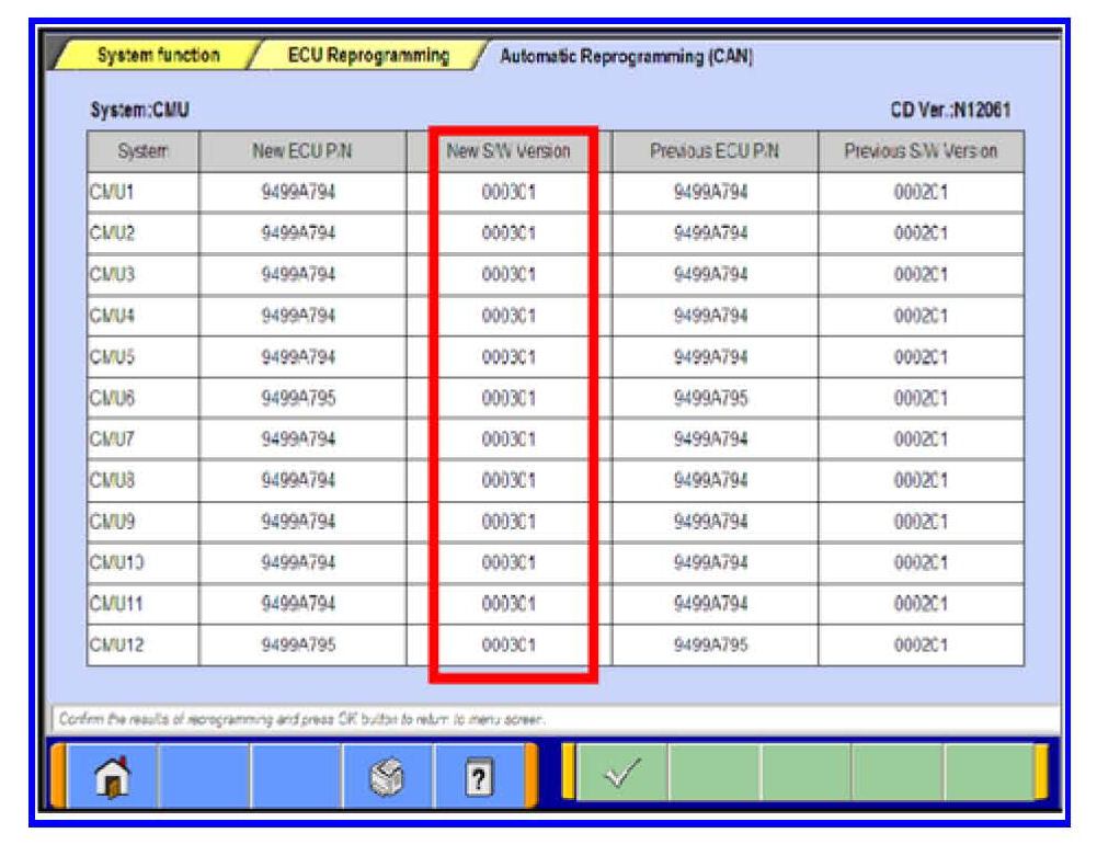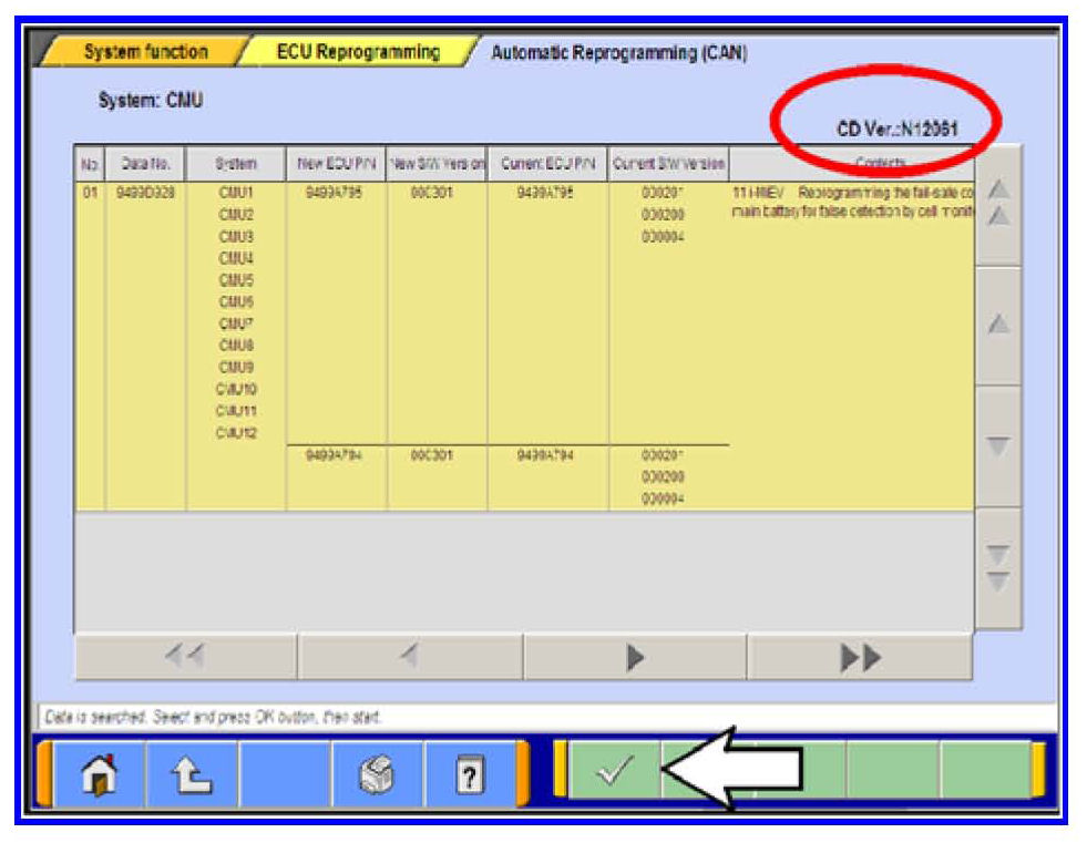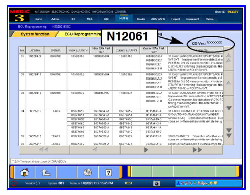 2. If the database number displayed on your MUT-III is lower than N12061, locate the Yellow MUT-III Reflash CD 01/12 and follow