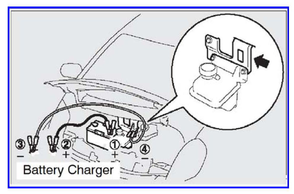 3. Attach the battery charger (medium or low setting) to the 12V auxiliary battery.