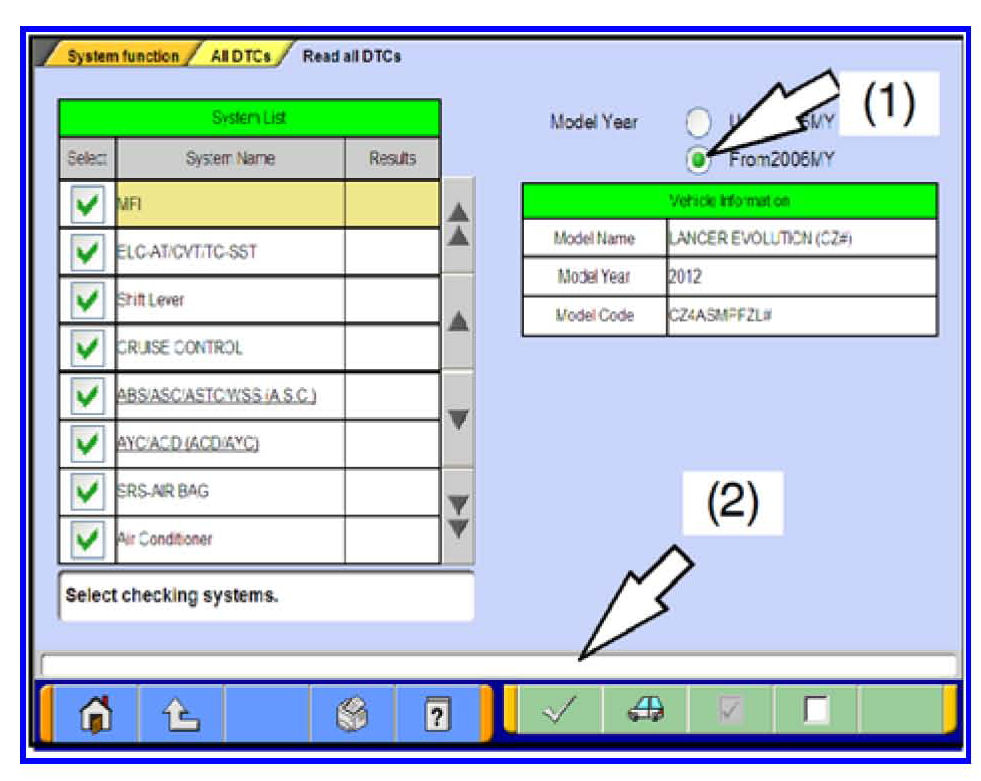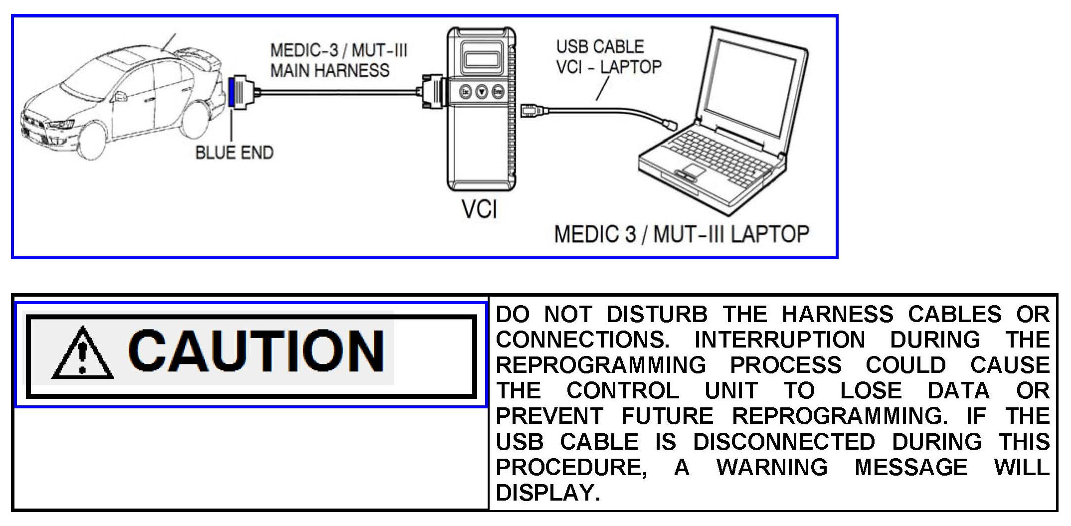 ^ Connect the MUT-III main harness with the blue DLC connection to the VCI.