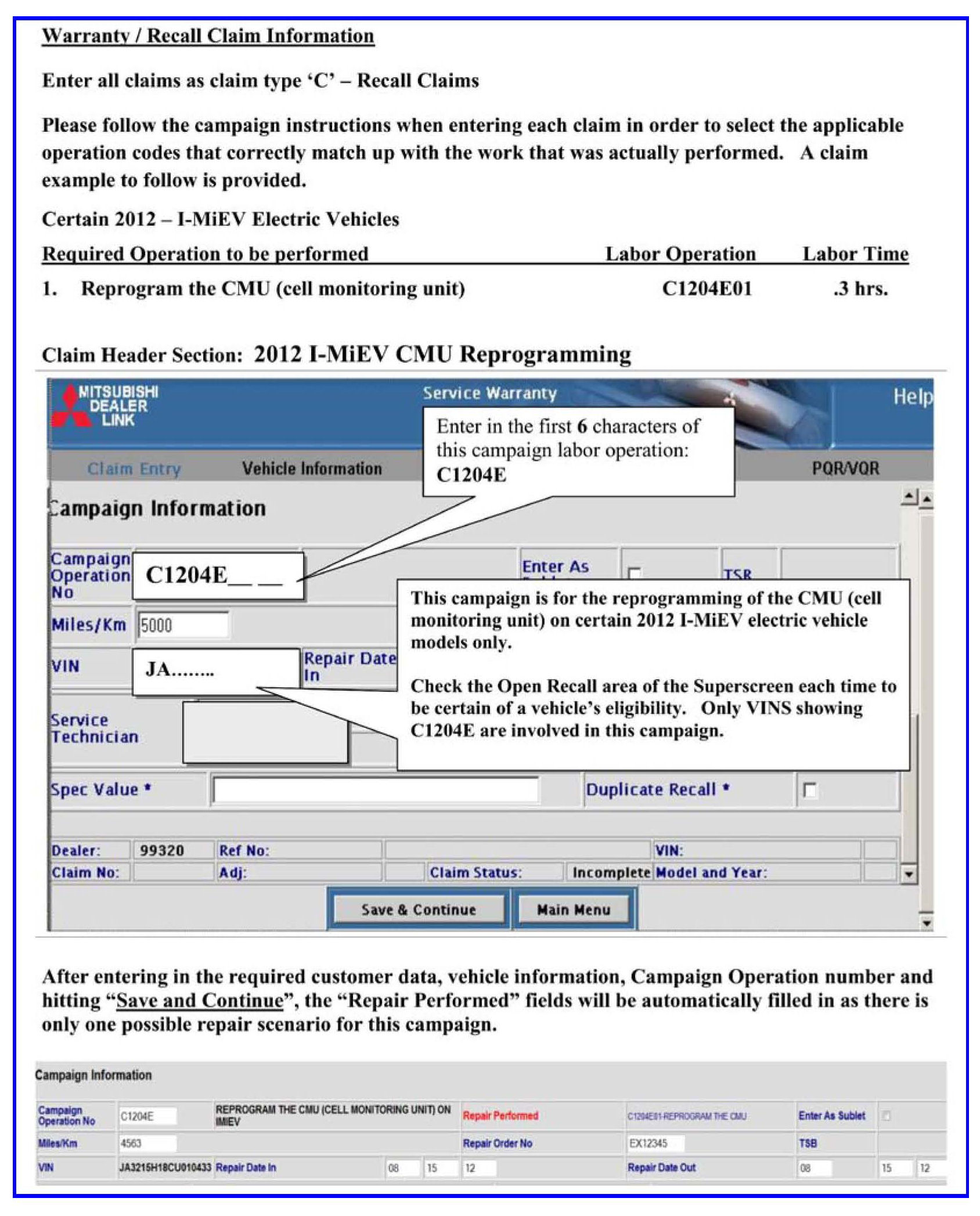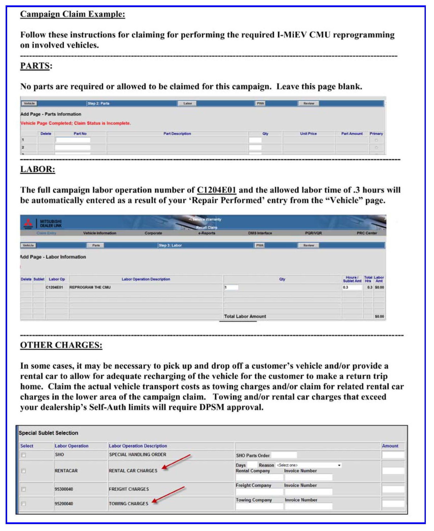 A letter will be sent to all owners of affected vehicles requesting them to bring their vehicle to a local certified Mitsubishi i-MiEV dealer to have their CMU updated to the latest software. A copy of the customer notification letter appears at the end of this bulletin.