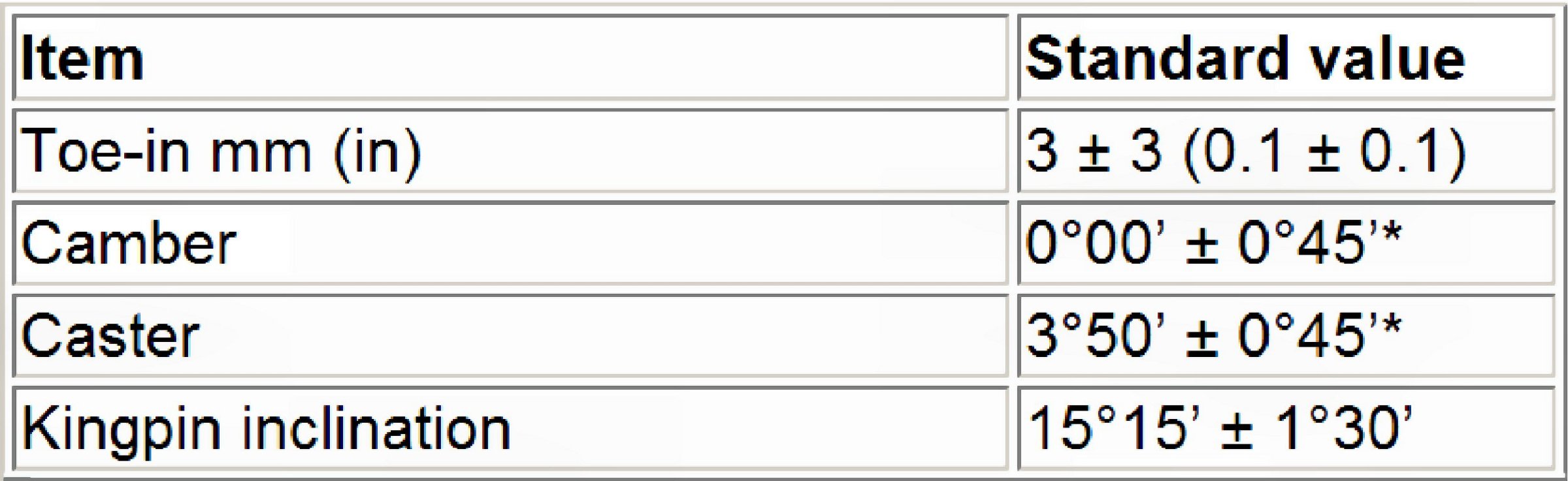 Wheel Alignment Specifications