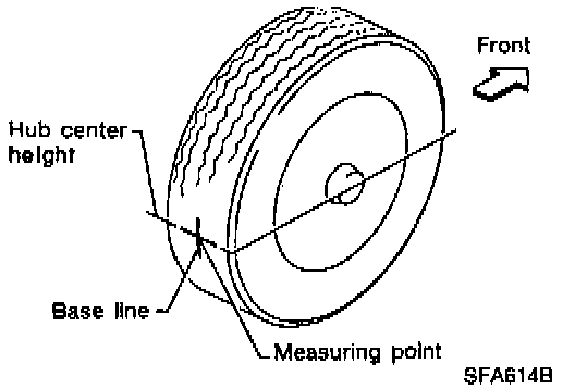 3. Put a mark on base line of tread (rear side of both tires at the same height as hub center. These are measuring points.