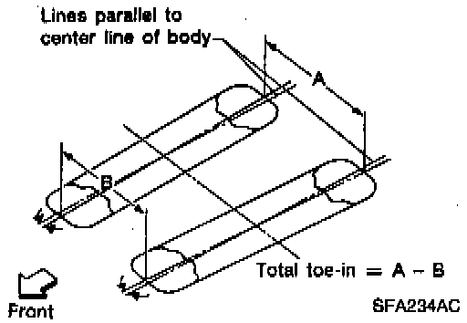 FRONT WHEEL ALIGNMENTBefore checking front wheel alignment, be sure to make a preliminary inspection (unladen*).