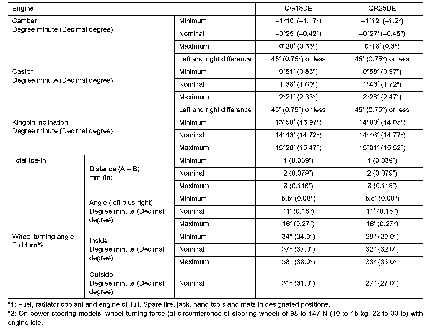 Front Wheel Alignment (Unladen*])