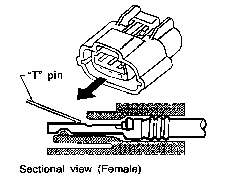 - There is a small notch above each female terminal. Probe each terminal with the "T" pin through the notch.