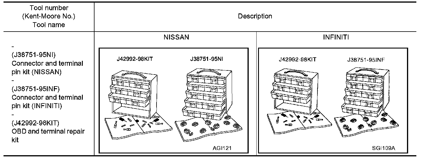 Use the connector and terminal pin kit listed below when replacing connectors or terminals.