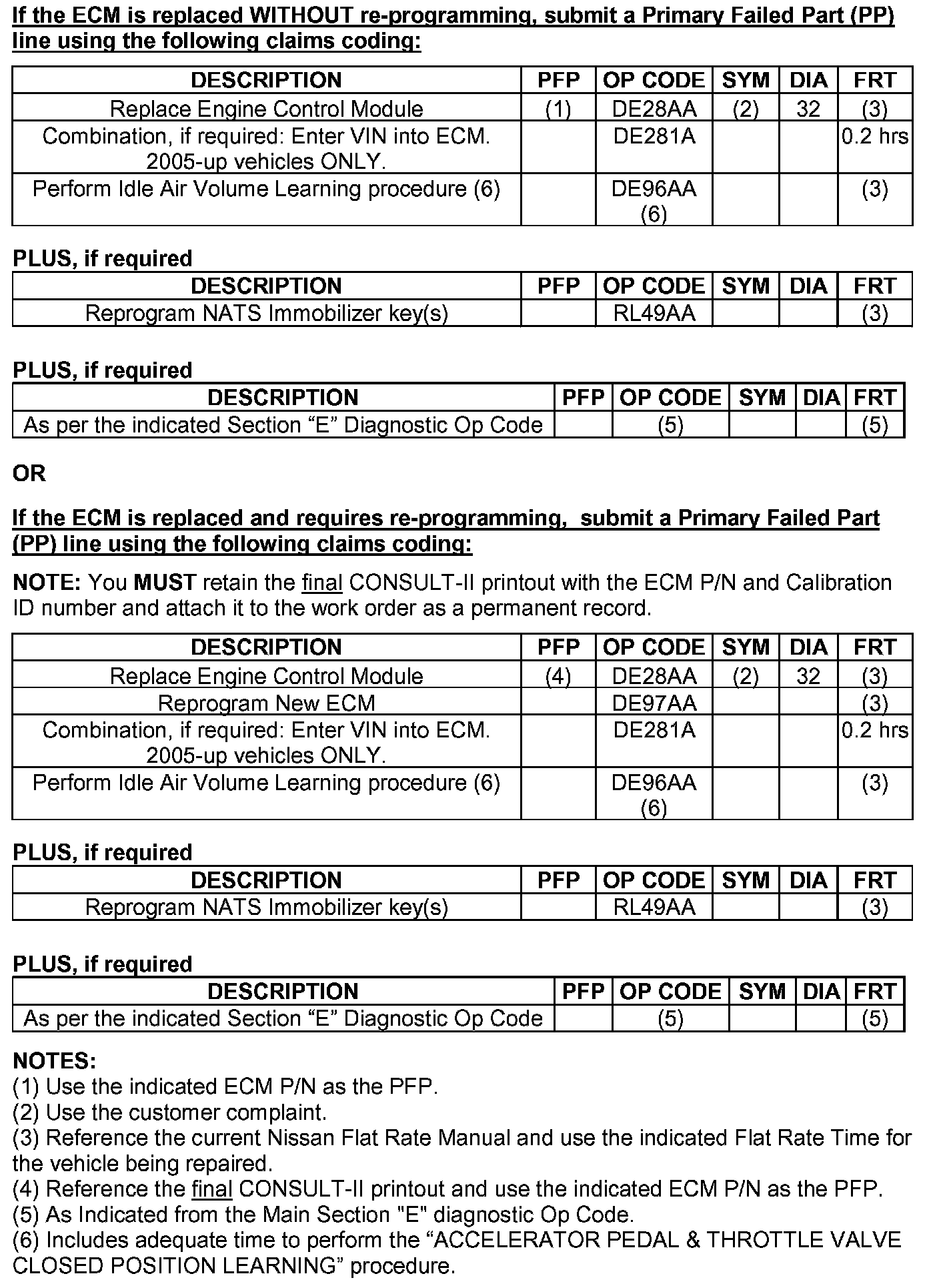 ^ After installing the new ECM, perform the "IDLE AIR VOL LEARNING" procedure (when applicable) using CONSULT-II. See step 6.