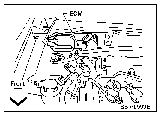 1. ECM is located in the right side of the cowl top (behind the strut tower).