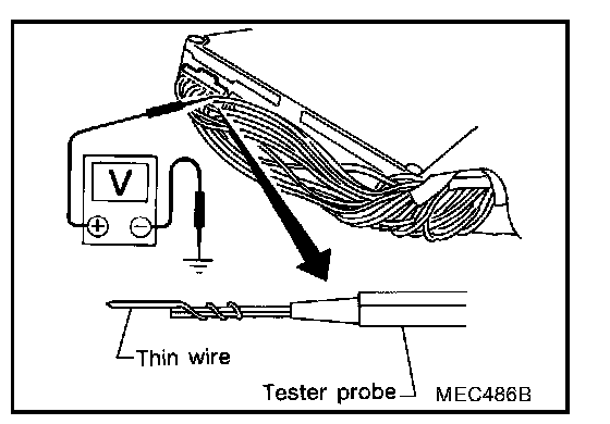 3. Perform all voltage measurements with the connector connected. Extend tester probe as shown to perform tests easily.