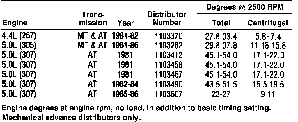Distributor Timing Advance Specifications: