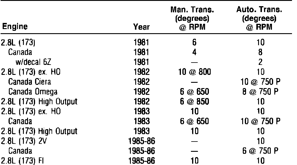 Ignition Timing: Specifications