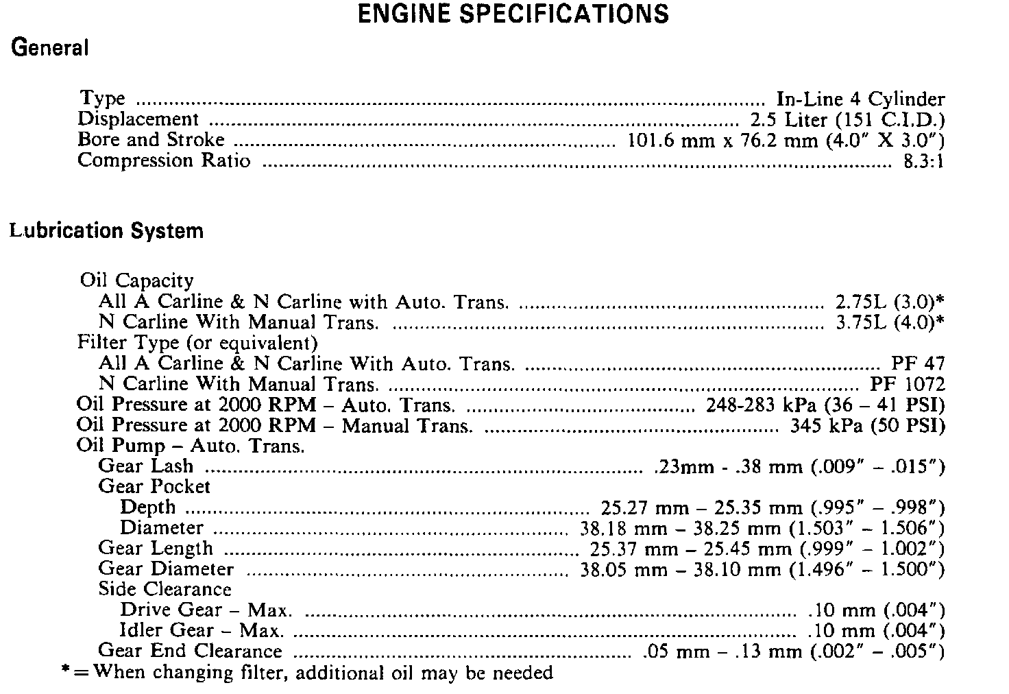 Continued Engine Specifications: