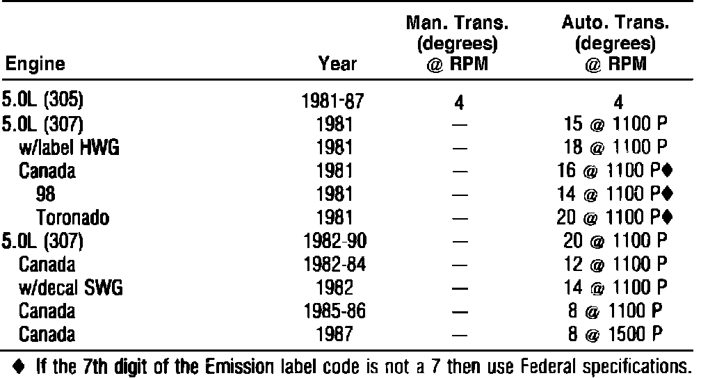 Ignition Timing: Specifications