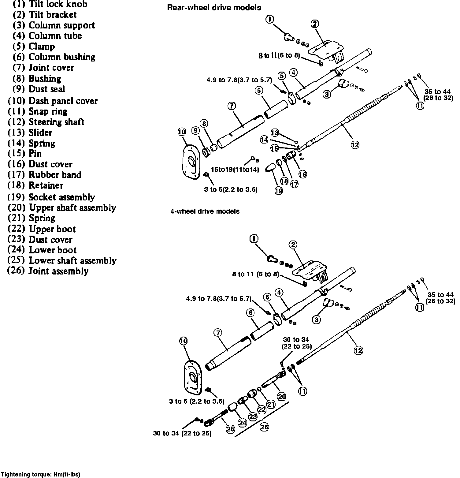 Fig. 9 Exploded view of steering column assembly. 1984-86 Ram 50: