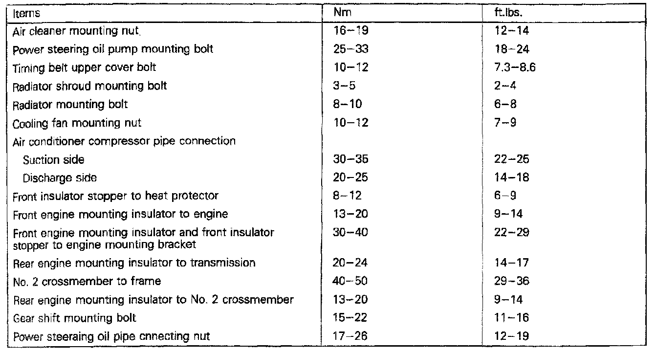 Tightening Specifications