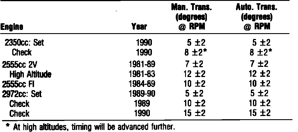 TIMING SPECS 2600cc: